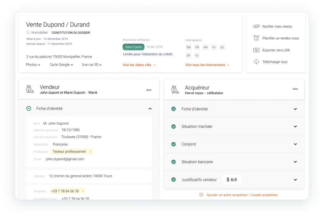 Le service FoxNot permet aux particuliers de transférer en quelques clics les éléments de leur dossier au notaire. Le suivi des démarches est transparent et accessible en temps réel.